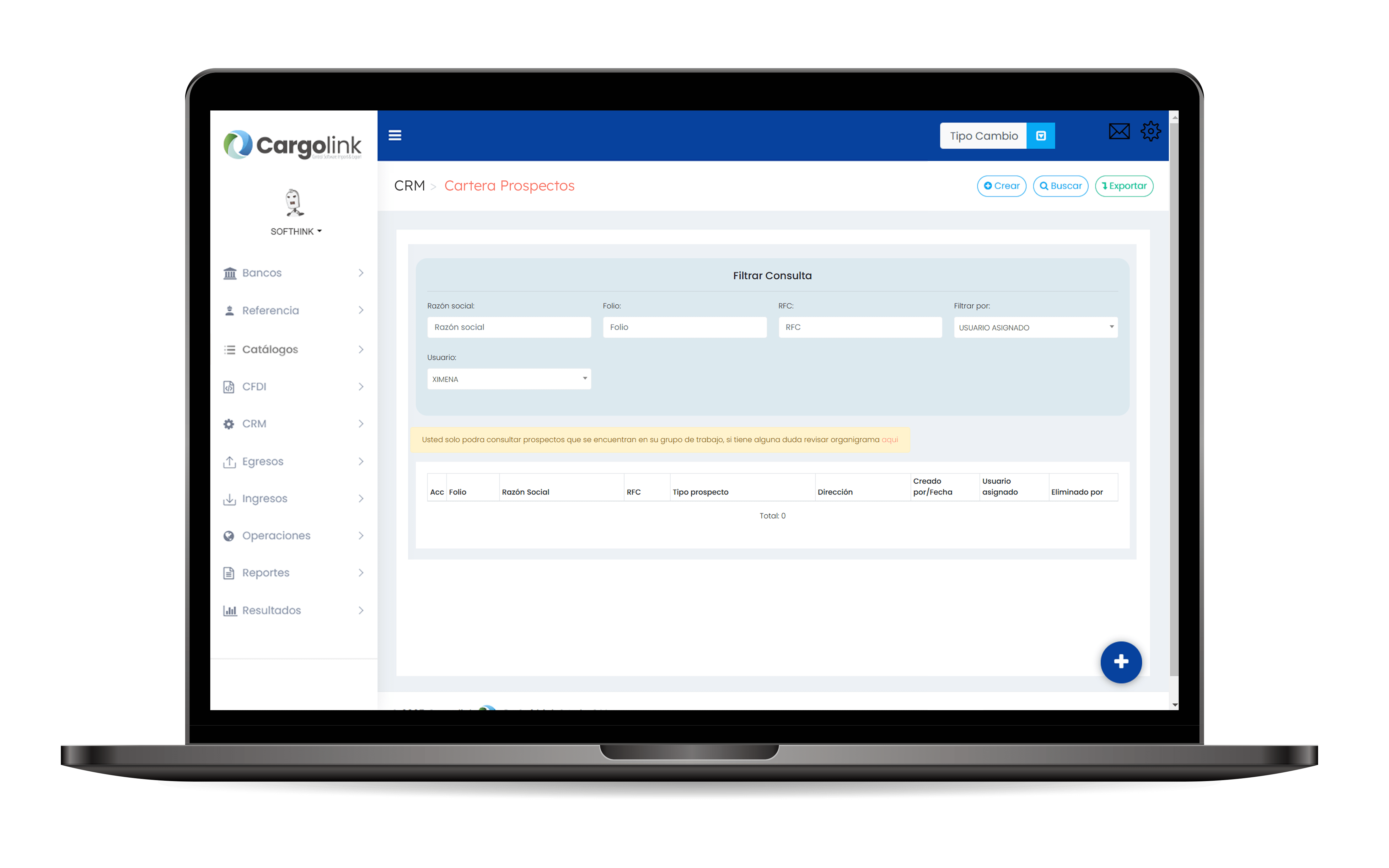 Este módulo permite gestionar la base de datos de clientes potenciales o prospectos. Los usuarios pueden registrar y hacer un seguimiento de todos los prospectos interesados en los servicios del forwarder, incluso antes de que se formalice una relación comercial.