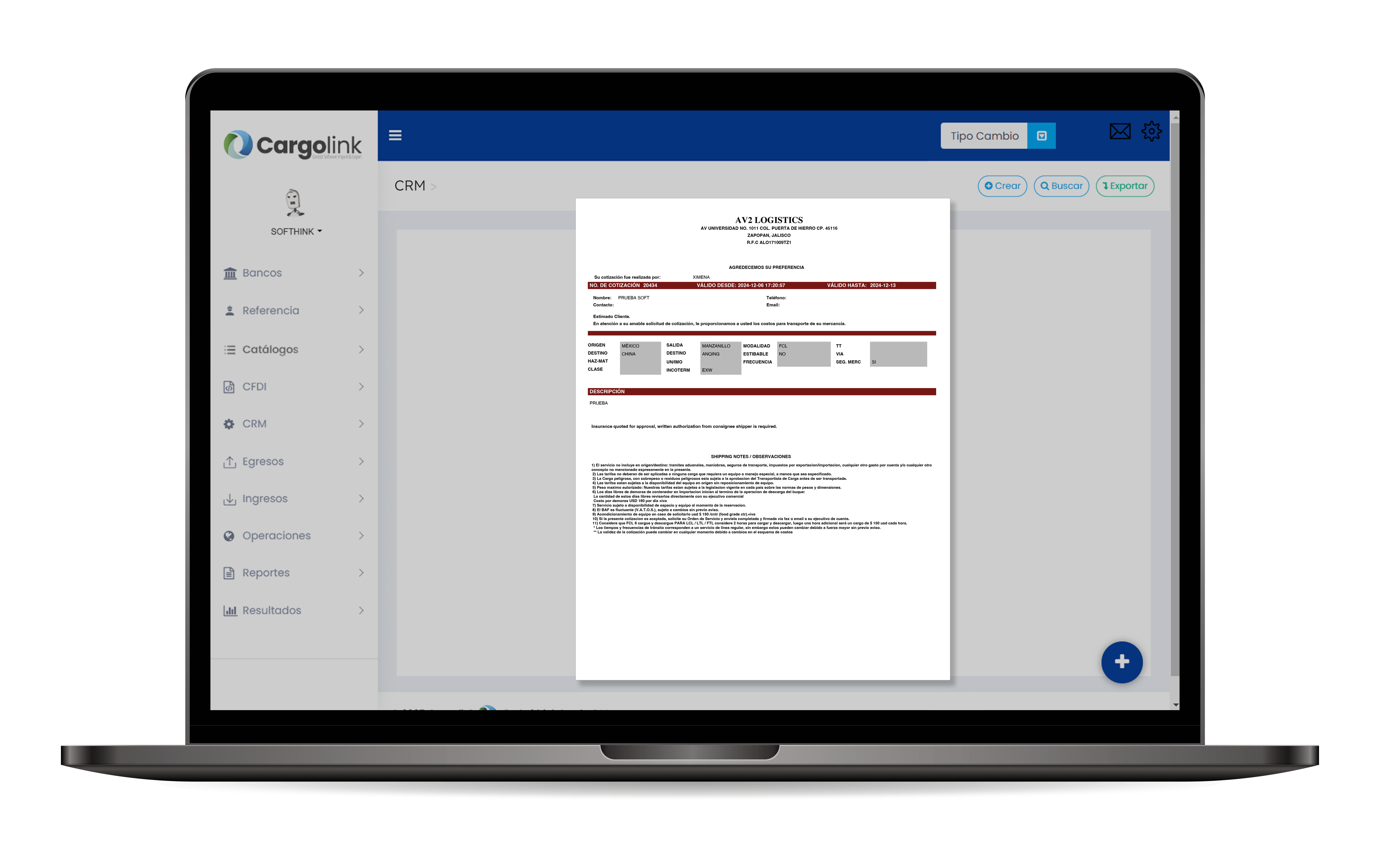 El Módulo Administrativo proporciona una solución integral para la gestión de las relaciones comerciales y operativas dentro del sistema logístico, facilitando tareas de seguimiento de prospectos, la creación y gestión de cotizaciones, y la organización de la agenda administrativa. De este modo, se optimiza el tiempo, mejora la comunicación con los clientes y garantiza una administración eficiente de los procesos internos.
